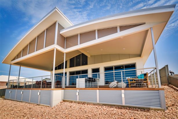 Located on the Exmouth Marina, this spectacular and well-designed holiday home exudes style, with its eye-catching curved roof line, beautiful finishes and an elegant colour palette that compliments the Ningaloo Coastal environment.